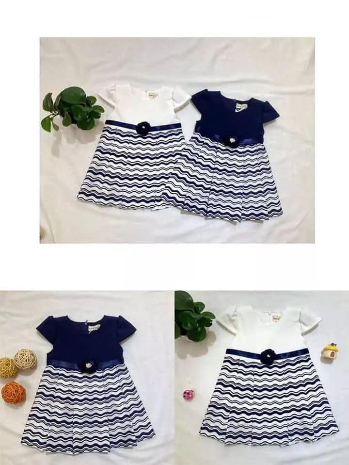 we uploded real picturer of the cloths .2 types of color Blue and White . It made high quility comfortable and soft . No harm to your skin. Stylish design make your Girls more attractive and lovely